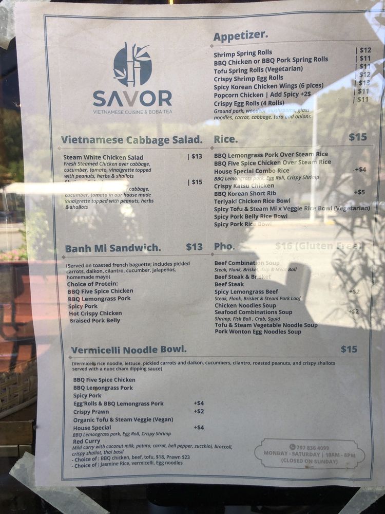 Savor Vietnamese Cuisine Menu (Update 2025)
